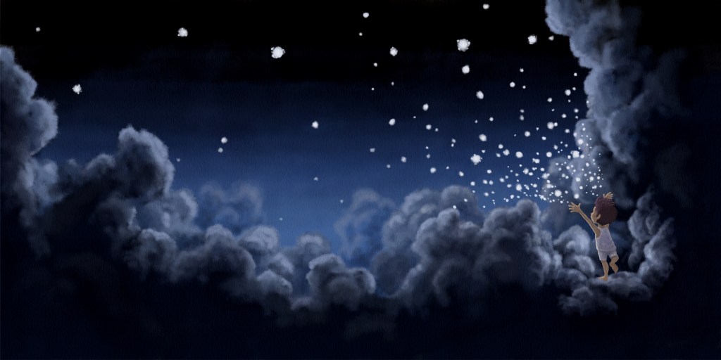 Follow the boy from darkness to light, to the clouds and the galaxies, through the mountains and deserts, meet creatures of all kinds and go to the ends of the earth until we learn what the missing light could be…